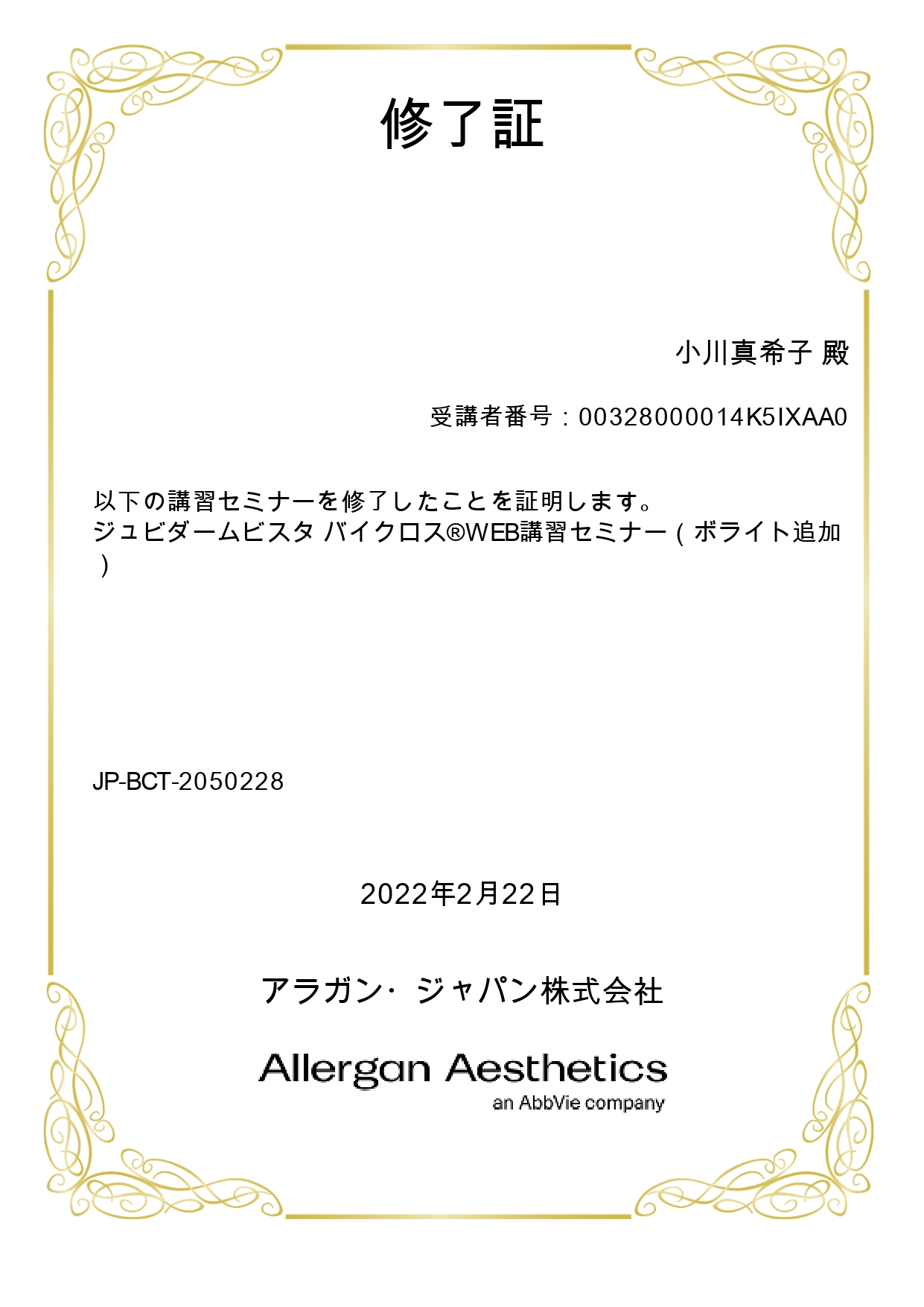 ヒアルロン酸レスチレーン認定
